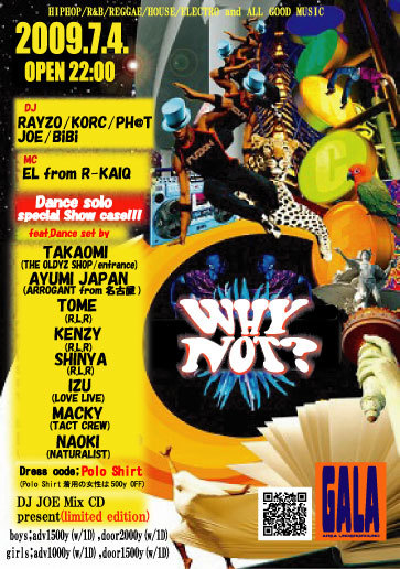 今回7/4(SAT)はWHY NOT?では数年ぶり(?)のDANCE SHOW CASEやります