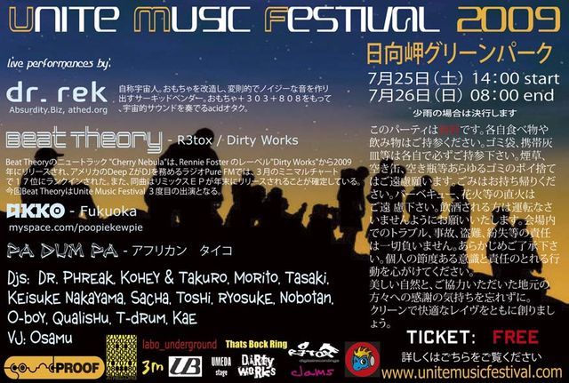 Unite Music Festivalを7月25日の土曜日に日向岬グリーンパークで開催します。このイベントは今回3回目となり、再び米の山に戻り、ハイクオリティーでfreeパーティーを行うのがとても楽しみです。