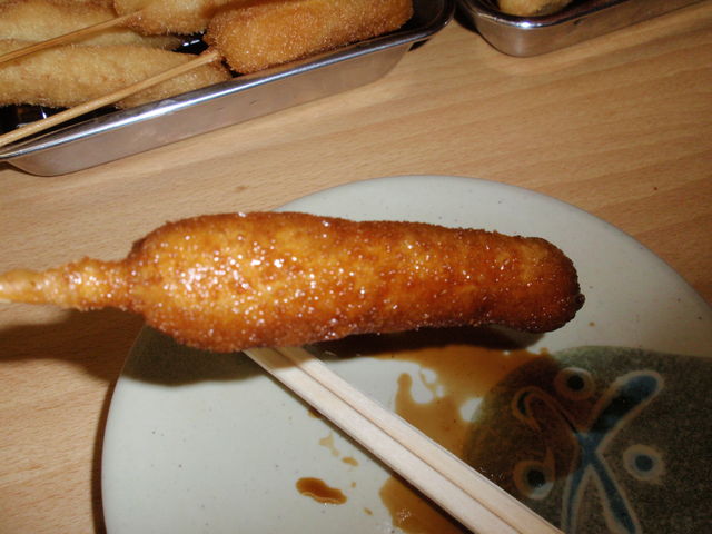 リベンジ串かつ 通天閣の下で汗かきながら、二度漬け禁止のソースをたっぷりと串かつを食らいましょう 日時 平成21年7月11日(土)15時頃から 場所 大阪市浪速区恵美須東 通天閣の下あたり 参加者が多い場合 『串かつ・どて焼 壱番』http://www.umaize.com/1ban/top/index.html ビリケンコース¥1,980+90分飲み放題¥1,280=¥3,260 後は単品の好きな物を食らう 集合場所は追って個人にメールでお教えしたいと思います