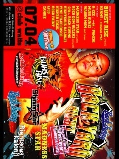 告知失礼します。 7月4日(土曜日)、東京を代表する次世代サウンドBURST RISEがブランニューMIX[CROSS OVER]の発売を記念して BACK YARD NIGHTに初登場!! 前売りチケット限定200枚! お見逃しなくっ!! BACK SWING PRESENTS. BACK YARD NIGHT SPECIAL!! -CAAN COOL STYLE vol.3- [CROSS OVER]RELEASE PARTY!! □第一土曜日レゲエの日□ 2009/07/04(土)22:00〜 @club WATTS ADV \1500(1Drink Order) ADM \2000(1Drink Order) ☆テキーラ100円の日☆ ★GUEST SOUND★ BURST RISE(東京)