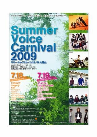 2009年7月18、19日の2日間にわたって、富山県太閤山ランドにて開催される夏フェス「サマーヴォイスカーニバル2009」にFUNKISTさんが出演されます。 FUNKISTさんは7月18日(土)に出演されます。 以下、イベント概要です。 ◆◆◆◆◆◆◆◆◆◆◆◆◆ 【開催日】 2009.7/18(土)、19(日) 【会場】 射水市太閤山ランド野外音楽堂 (〒930-0006射水市黒河4774-6) ↓富山県民福祉公園HP www.toyamap.or.jp 【開催時間帯】※両日共 open 13:00 start 13:30 finale 20:00予定 -------------------------- 18日