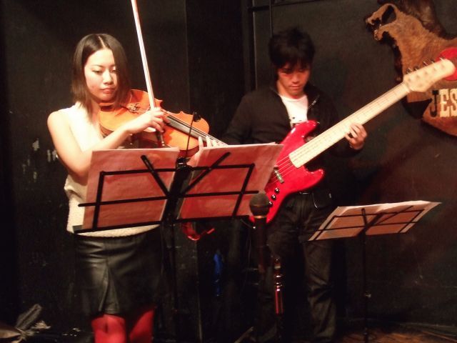 立川ジェシージェイムス http://homepage2.nifty.com/jessejames-tachikawa/ チャージ ¥2500(お店の会員\1800) Open 6:00pm~ Start 8:00pm バイオリン 依田彩 /ビオラ 田中詩織 / ピアノ小林真人 / ご予約・お問い合わせ 042-525-7188 バイオリンよりちょっと大きめのビオラ。とても深い音です。 ビオラ界の実力者アイドル、田中詩織さんとの共演です。 たっぷり2ステージ(入れ替えなし)でお届けいたします。 スタイリッシュなバイオリンミューズ彩さん(自称二十歳?)と アイドル系ビオリスト詩織ちゃん(コスプレ女子高生?