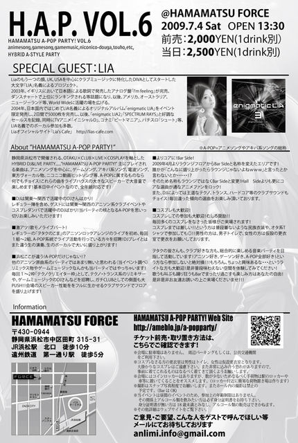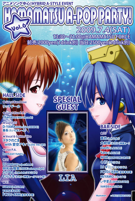 正式告知文完成! とりあえず正規の前売りはまだ来月に入ってからの予定で、 詳細は箱側と調整中です。 なので、このコミュで参加申請するが吉! チケットを取り置きしておきます! ただ、取り置きというのは、信頼あってのもの、 皆様を信頼して取り置きをさせて頂くので、 ドタキャンは絶対やめてくださいね! 箱側にも迷惑がかかってしまうので(><) よろしくお願い致します! 取り起きは7月3日まで募集中! ガンガン参加申請しちゃってください! ----- 浜松発!A-POPイベント! 6回目となる今回は、「LIA」プロジェクト
