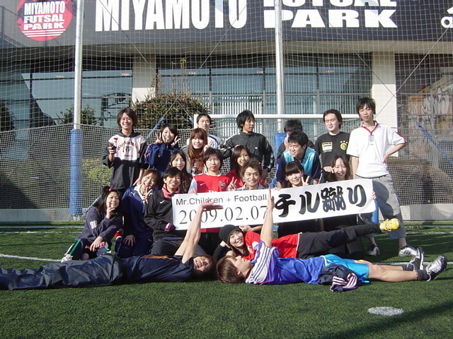 夢の舞台、チル蹴りワールドカップ開幕です BGMはもちろんミスチルオンリー プレーしながら歌いまくりましょう さぁ乗っかって君もおいでよ♪初参加の方も気軽にどうぞ *** 詳細 *** 【日時】 2009年7月4日(土曜) 13時半〜17時 【会場】 MIYAMOTO FUTSAL PARK@丸井 錦糸町店 R階屋上 〔街がジオラマみたく見えるマルイの最上階〕 ※錦糸町駅徒歩1分 【集合】 JR錦糸町駅 南口 13時12分(厳守) 【参加費用】 男性:1800円 / 女性:1500円 ・プレーする、しないに関わ