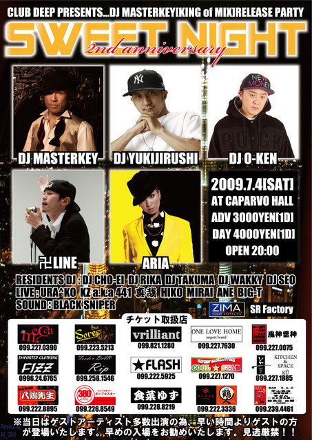 RESIDENTS DJ: DJ CHO-EI DJ RIKA DJ TAKUMA DJ WAKKY DJ SEO