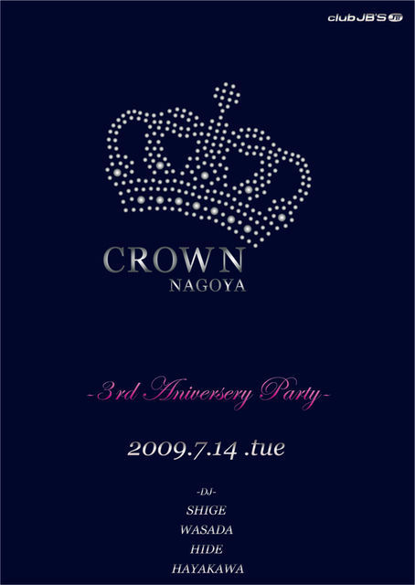 何を血迷ったか、ド平日にスタートした ダンスミュージックパーティ「CROWN」。 気付けば来月で産声をあげて、早3年。 主催者の思惑とは意に反して(?)続いちゃいました。 よく周年パーティは、どこかのゲストDJを呼び込んでパーティ。 というのが主流ですが、 そうすると、自分たちの周年パーティなのに、 お客さんみんなに、CROWNの音の内容を伝えられずにワーキャゆって 終わってしまうので、 結局、ウチは周年は誰もゲストDJを呼びません。 でも、何もナイというのもさみしいばっかりなので、 ステキな方々を召還しました。