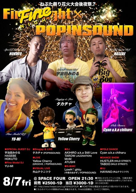 管理人様、告知失礼いたします。 「XTR 6th Anniversary Party」 ADV:\2500 DOOR:\3000 日時:7/17(FRIDAY) 場所:@SPACE FOUR START:21:30~ GUEST LIVE :YELLOW CHERRY :サイプレス上野とロベルト吉野 ...and more!! この他、DJ陣もヤバイメンツが参加予定なので、7/17(金) は皆さんSPACE FOURへお越しください。 詳しい内容はBLOG(http://xtrblog.exblog.jp)で記載していきますので、 ご覧ください。 チケット問合せ先 XTR:017-735-3009