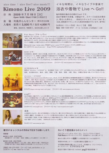 Ëèǯ¹±Îã¤È¤Ê¤ê¤Þ¤·¤¿¤ì¤¤¤³¤¦Æ²¤Î¿®·Ã¤µ¤ó´ë²è¡ØÃåʪ¥é¥¤¥Ö£²£°£°£¹¡Ù¤Î¤ªÃΤ餻¤Ç¤¹¡£ °Ê²¼Ãåʪ¥é¥¤¥Ö¥Á¥é¥·¤è¤ê ¥¤¥¤Ê»þ´Ö¤Ï¡¢¥¤¥¤Ê¥é¥¤¥Ö¤ä²»³Ú¤Ç Íá°á¤äÃåʪ¤ÇLive¤ØGo!! Ëèǯ¹±Îã¤Îevent¤Ç¤¹¡£ Íá°á¤äÃåʪ¤Ç¤ÎÍè¾ì¡¢Âç´¿·Þ¤Ç¤¹¡£¥¹¥Æ¡¼¥¸¤Ï¼ÇÀ¸¤ÎÁð¤Î¾å¡¢¸«¤ë¿Í¤âÁð¤Î¾å¡¦¡¦¡¦¼«Í³¤Ê¥¹¥¿¥¤¥ë¤Çnice¡¡time¡ª¤ò¡£ ¡ÊÍá°á¡¢ÃåʪÃåÉÕ¤±¤ä¥ì¥ó¥¿¥ë¤â³Ê°ÂÍÎÁ¸ÂÄê¤Ç¹Ô¤¤¤Þ¤¹¡£Í×ͽÌó¤Ç¡¢¹Ô¤¤¤Þ¤¹¡£Í×ͽÌó¡Ë ¢¡£²£°£°£¹Ç¯£··î£±£¹Æü(Æü)¡÷¸þÅçÍΤé¤ó¥»¥ó¥¿¡¼ ¢¡Open16:00 / start 17:00 (¾®±«·è¹Ô¡Ë ¢¡Á°Çä¤ê3500±ß/ÅöÆü4000±ß ¡¡Ãæ