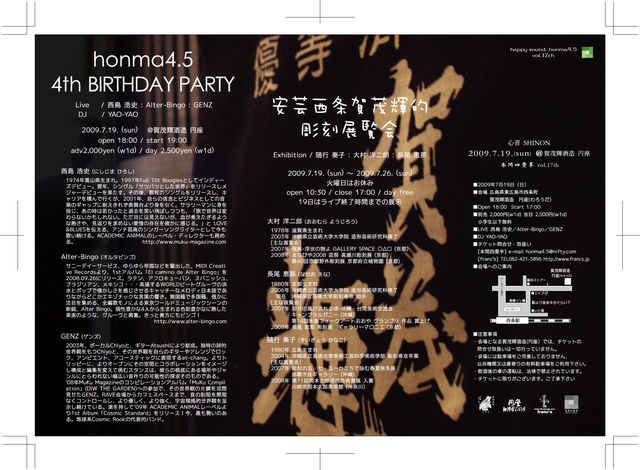 ¤ª±¢Íͤǡ¢Ëֻܴ;öȾ¤â7·î8Æü¤Ç4¼þǯ¤ò·Þ¤¨¤Þ¤¹¡£ ¤³¤³¤Þ¤Ç¡¢Â³¤±¤Æ¤³¤ì¤¿¤Î¤â³§¤µ¤Þ¤Î¤ª±¢¤Ç¤¹¡£ ¤¢¤ê¤¬¤È¤¦¤´¤¶¤¤¤Þ¤¹¡£ ¤½¤ó¤Ê¡¢Ëֻܴ;öȾ¤¬´¶¼Õ¤Îµ¤»ý¤Á¤ò¹þ¤á¤Æ¤ªÁ÷¤ê¤¹¤ë Ëֻܴ;öȾ´ë²èVOL.17 ¡Á¿´²» SHINON¡Á ¹Åç¡¢½é¾åΦ¤Î3ÁÈ¡ª¡ª º£²ó¤Ï¡¢½é¤Î»î¤ß¡ª ¥é¥¤¥Ö¤È¡¢¸ÄŸ¤ÎÆóËÜΩ¤Æ¡ª¡ª ¢£2009ǯ7·î19Æü¡ÊÆü¡Ë ¢£²ñ¾ì¡¡¹Å縩Åì¹Åç»ÔÀ¾¾òÄ® ¡¡¡¡¡¡¡¡²ìÌе±¼ò¤¡¡±ßºÂ¡Ê¤ï¤í¤¦¤À¡Ë ¢£Open 16:00¡¿Start 17:00 ¢£Á°Çä 2000±ß(w1d) ÅöÆü 2500±ß(w1d) ¢£LIVE À¾Åç ¹À»Ë Alter-Bingo GENZ ¢£DJ / YAO-YAO