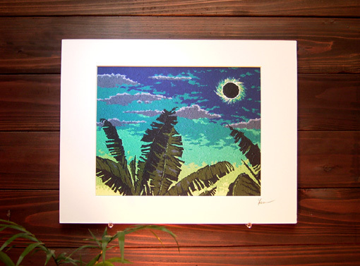 種子島在住アーティストYasuの “皆既日食記念アート”が完成しました。 今世紀最大の天体ショー 種子島のドラマチックなダイヤモンドリングや コロナで神秘的にそよぐバナナリーフなど 種子島で体験する皆既日食をアクリル画で表現しました。 21日は皆既日食前夜祭(西之表新港緑地公園) 22日皆既日食当日は観測場所で本人が直接販売する限定商品です。 ポストカード、Tシャツ、ポスターなど 種子島にお越しの際は是非記念にお見逃しなく!! 今週末18日から種子島の各所に 車で移動販売していますので、是非お越しく