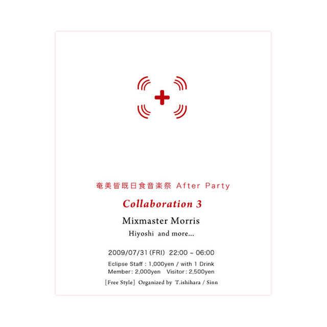 皆様こんにちは。 本日、Mixmaster Morrisが奄美皆既日食音楽祭のアフターパーティにてプレイします。 会場のSound Bar+の場所等、お問い合わせはGlobal Chillageまでご連絡ください。 - - - - - - - - - - - - - - - - - - - - - - - - - - - - - - - - - - - - - - - - "Collaboration 3 - 奄美皆既日食音楽祭 After Party - " @ Sound Bar+ 2009.07.31 (fri) 22:00~06:00 - music by - Mixmaster Morris Hiyoshi and more... - entrance - 2,500yen - organized by - T.ishihara / S