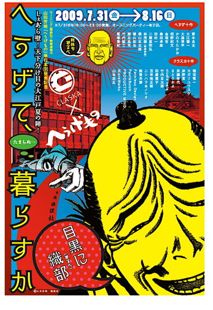 みなさんこんにちは 山田芳裕『へうげもの』最新刊第9服は2009年7月23日(木)発売です 刊行を記念し、通算4回目の十作参戦イベントを行います 今度の主催は東京新名所の呼び声も高い〈CLASKA(クラスカ)〉 従来のへうげ展とはまた趣を異に、真夏の一大バザール……といったところ メインイベントは、へうげ十作 vs. クラスカ十作総勢30名による「剽藝者」対決 (うつわ、オブジェ、Tシャツなど、展示販売) その他、限定フードメニュー、特別宿泊プラン、屋上名画座、 利休葬ライブパーティーなど、クラスカほぼ全館がへうげます どうぞ