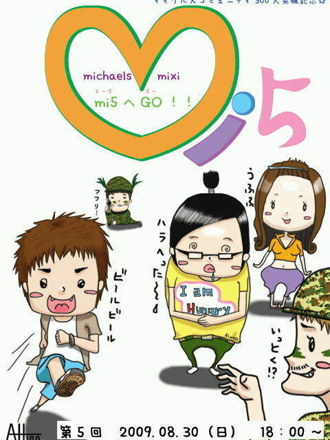 おかげさまでコミュの参加人数が500人を超えました。 500人達成記念といたしまして第5回マイケルズコミュオフ会を開催します! 参加条件はmixiをやっていてマイケルズのコミュニティに参加している方なら誰でもOK。 会費は3000円(飲み放題、料理代込み)。 夕方の6時から開始します。 飲み放題は9時までの3時間です。 8時半以降に来場の方は会費3000円でチケット6枚綴りをお渡しします。 お好きなドリンクかフードと交換できます。 人数次第ですが朝までオールナイトで開催されますよ!
