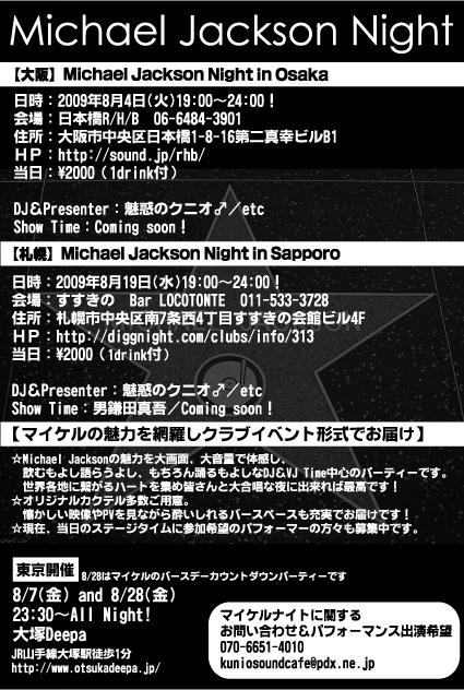 マイケル関連曲オンリーの一晩、大阪開催のお知らせです。