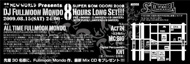 09は会場をパンク箱『キングコブラ』に移し、凄腕VJ『act24』新結成参戦!MC,デジタルパーカッションも入り乱れが決定!