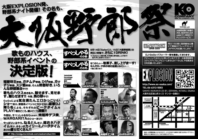 8/22.SAT、大阪心斎橋 Live & Bar 11(onzi-eme)にて、ハイブリッドパーティー"06"の1周年パーティを開催します!!