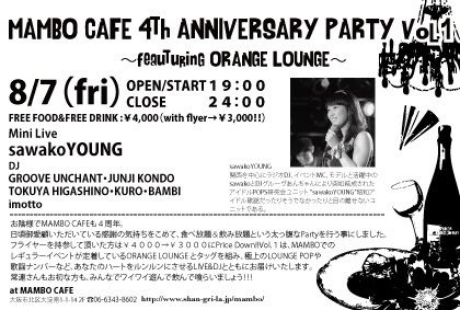 いつもお世話になっているMAMBO CAFEさんとタッグ組んでORANGE LOUNGEスペシャルを開催します