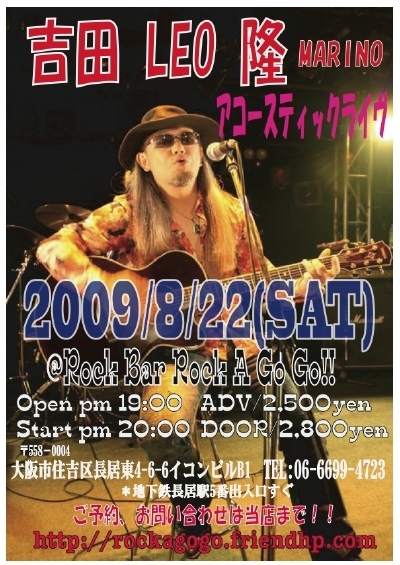 2009/8/22(土)大阪住吉区長居 Rock Bar Rock A Go Go!!にて、LEOさんのアコースティックライヴがあります!!