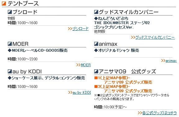 物販情報 http://pc.animelo.jp/rebridge/goods/ ※当日一部イベントでは整理券の配布を予定しています。 とあるんだぜ!!23日のアイマス班は注意されたり^ー^ ヴァイスシュヴァルツ 配布時間:9:00〜 野外ステージ入口にて http://pc.animelo.jp/rebridge/ タイトル Animelo Summer Live 2009 -RE:BRIDGE- (アニメロサマーライブにせんきゅう リ・ブリッジ) Animelo Summer Live 2009 Theme Song - RE: BRIDGE ~Return to oneself~ 日時 2009年8月22日(土)、8月23日(日) 各日 14:00開場、16: