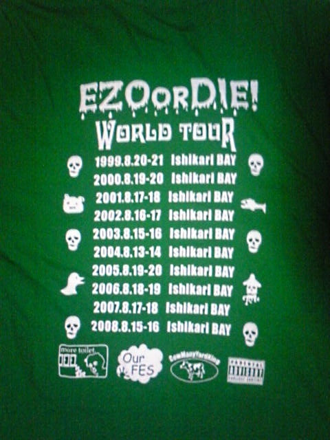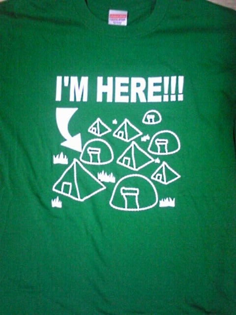 当日は、所定の場所で写真のEZO OR DIE!!Tシャツ(グリーンの奴です)着て飲んでますので、目印にしてください。やむを得ず場所が微妙にずれたりするかもしれませんが、その場合は当日このトピック上でお
