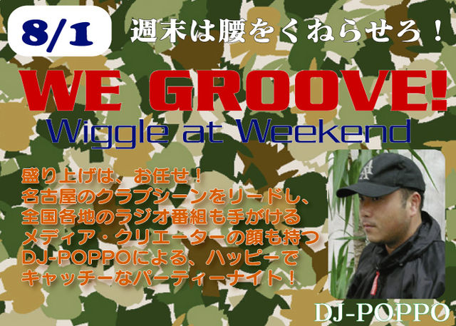 さらにPOWER UPし、盛り上がりのアビームの週末 週替わりでDJが変わったり、MCが加わったりそれぞれのテイストでフロアを盛り上げています。 その盛り上がりの WE GROOVE ゲストDJ POPPOによる、HIT曲がガンガン ダンスフロアを、熱狂の渦に巻き込みます DJ POPPO 名古屋のクラブシーンをリードし、現在は大阪、名古屋のFM局で活躍中のDJ POPPOが満を辞してアビームから再起動 週末が楽しくなりそう