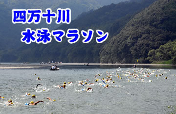 第16回 四万十川水泳マラソン 四万十川水泳マラソン 開催日時:平成21年8月2日(日) 開催場所:佐田沈下橋〜赤鉄橋 交通:中村駅より車で約15分 観光名所でもある佐田の沈下橋をスタートし、約5?下流の赤鉄橋まで泳いで下ります。3.5kmの部もあり老若男女を問わず誰が参加しても楽しめる大会です。 ※問合せ先: (財)四万十市体育協会 (0880) 37-4558 いよいよ申し込み期限が来週月曜日22日です。 ご参加を検討されてる方はお急ぎ下さいね。 去年のセリカさんのゴール映像です。