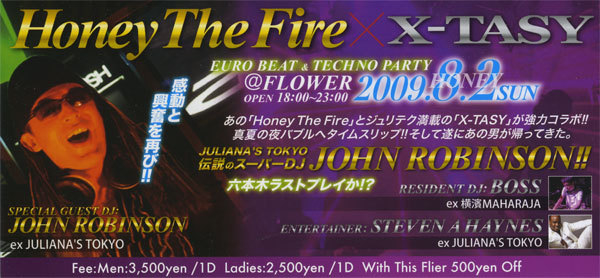 8月2日は、『ハニーの日』と題して、あの「Honey The Fire」とジュリテク満載の「X-TASY」が強力コラボ!