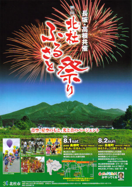 北杜市長坂町スポーツ公園にて開催される『北杜ふるさと祭り』では http://www.city.hokuto.yamanashi.jp/hokuto_wdm/html/joy-n/75902382136.html フリーマーケットの参加者を募集しています 参加条件は、北杜市在住の方で、区画は約180×180cm 出店料は無料です。 フリーマーケットの会場は、サッカー場北側スタンド上の通路になります。 時間は朝10時から夕方までです。 出店内容は、飲食物、薬品など危険物以外のもので 出店される方が責任の持てるものであれば構いません。 家庭で不用になったものの