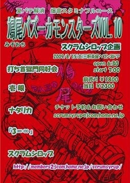 はい!お待ちどー!久々の都内ライブ!! しかも爆音天国ヘブンズドア!! しかもスクラムシロップさん主催のお祭りイベント「鳩尾バズーカモンスターズ」にまたまた参戦!! 楽しすぎ!! 対バンにはスクラムシロップさんをはじめ、サイクロンで一度対バンした壱眼さんや前回も同じ企画で一緒だったIII=∞さん、ナタリカさんなどなど申し分なし!! しかもこの日振る舞われる食として本格グリーンカレーが用意されるとか!! これは辛いもの好きのjunkoさんも黙っちゃいない!仕込みから手伝う!と意気込んでおります!(笑) 熱い