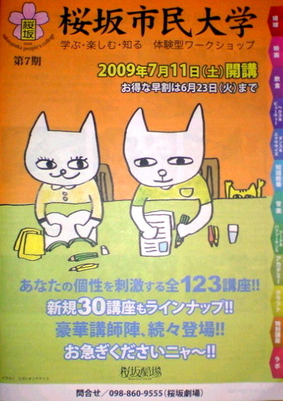 http://uruma.ap.teacup.com/waraba/470.html 沖縄・那覇の国際通り裏にある個性的でレアーな映画も紹介してくれる映画館『桜坂劇場』。その3Fのスタジオで開講されている『桜坂市民大学』の講座を引き続き持つ事になりました。 桜坂市民大学での【アフリカンダンス入門編】クラスは【平日の昼間】コース。今までは、昼間体を動かしたい学生さんや主婦の方、月曜休みの方、夜出勤で今までなかなかクラスに参加出来なかった方…など、にご参加頂いておりました。 また今期からは、そのダンス講座に加え、新しく【西アフリカ文化講座】も2ク