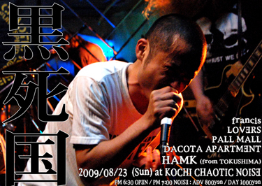 今週末一本目08月21日は、DISCAPHORICS企画"蠅"!! 今回は静岡より初期衝動3ピース高校生ロケンローラーズ"WEMMER"が来高っす!! 続く二本目、08月22日はDODDODO劇場最終夜!! 今回は盟友"DJ MIGHTY MARS"と共演、更にSUSPIRIAの青野、BOGULTAのショウゴによる超高速ブラスト2ピース"bt.mp.disciples A.K.A WALKMAN"も同時来高っす!! ラスト三本目、08月23日は四国のイカして、イカれたバンドを迎えて行う企画"黒死国 / 第二十六夜"!! 今回は徳島よりパワーポップバンド"HAMK"を迎えて行います〜!! 詳細はこちら(↓) ● 08月21日(金) "D