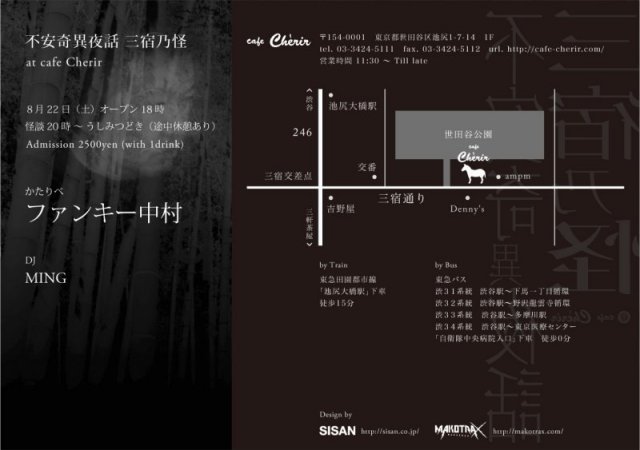 open : 22:00〜 door:3500yen / with flyer: 3000yen