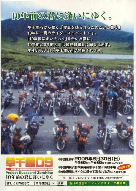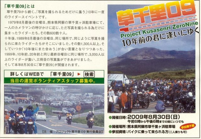 ¤´Â¸ÃΤÎÊý¤â¤¤¤é¤Ã¤·¤ã¤¤¤«¤È»×¤¤¤Þ¤¹¤¬£±£°Ç¯¤Ë£±ÅÙ¤ÎÁðÀéΤ£°£¹¤¬£¸·î£³£°Æü¤Ë³«ºÅ¤µ¤ì¤Þ¤¹¡£ º£²ó¤Ç£´²óÌܤγ«ºÅ¤È¤Ê¤ê¤Þ¤¹¡£¤³¤ì¤òƨ¤¹¤È¡¦¡¦¡¦¼¡²ó¤Ï£±£°Ç¯¸å¡£¡£¡£ ¸½ÃÏÅþÃå¸å¤Ï¼Ì¿¿»£±Æ¤È¤Ê¤Ã¤Æ¤¤¤Þ¤¹¡£¡Ê¼Ì¿¿½¸¤Ï¸åÆüȯÇä¡Ë »þ´Ö¤ÏÄ«£¶»þ¡ÁͼÊý£±£¸»þ¤Þ¤Ç¤È¤Ê¤Ã¤Æ¤ª¤ê¤Þ¤¹¤¬¡¢²æ¡¹¤ÏÄ«Áᤤ»þ´Ö¤òÁÀ¤Ã¤Æ¹Ô¤³¤¦¤È»×¤¤¤Þ¤¹¡£ ¥Ð¥¤¥¯¾è¤ê¤ÎÇ®¤¤»×¤¤¤ò¡¦¡¦¡¦¤¢¤Î´¶Æ°¤ò¡¦¡¦¡¦£±£°Ç¯±Û¤·¤ËºÆ¤Ó¡¦¡¦¡¦¡£ ¤Á¤Ê¤ß¤Ë¤³¤Î¥¤¥Ù¥ó¥È¤Ï±«Å··è¹Ô¤Ç¤¹¡£ µ¤¹ç¤Î¤¢¤ëÊý¤Ï¥«¥Ã¥Ñ»ý»²¤Ç¤ª´ê¤¤¤·¤Þ¤¹¡Ê¾Ð¡Ë