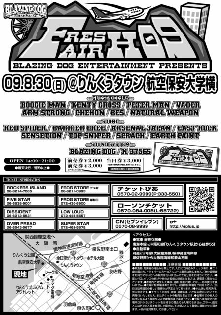 ´ÉÍý¿ÍÍÍ¡¢¹ðÃμºÎ餷¤Þ¤¹¡£ BLAZING DOG Presents!!! ¢££Æ£Ò£Å£Ó£È¡¡£Á£É£Ò¡¡2009¢£ ¢¡³«ºÅÆü¢¡ 2009ǯ8·î30Æü¡ÊÆü¡Ë /(±«Å··è¹Ô) ¢¡³«¾ì/³«±é¢¡ 14:00 ¢¡½ª±é¢¡ 21:00 ¢¡¾ì½ê¢¡ ¤ê¤ó¤¯¤¦¥¿¥¦¥ó¹Ò¶õÊݰÂÂç³Ø²£ÆÃÀߥ¹¥Æ¡¼¥¸ ¢¡½»½ê¢¡ ¢©598-0047 ÂçºåÉÜÀôº´Ìî»Ô¤ê¤ó¤¯¤¦±ýÍèÆî3-11 ¢£½Ð±é¼Ô¢£ ¢¡GUEST DJ¢¡ BOOGIE MAN KENTY GROSS PETER MAN VADER ARM STRONG CHEHON BES NATURAL WEAPON ¢£GUEST SOUND¢£ RED SPIDER BARRIER FREE ARSENAL JAPAN EAST ROCK SENSETION T