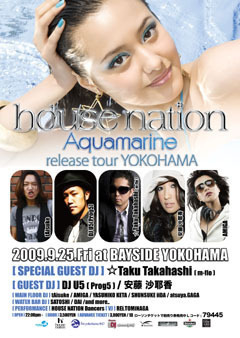参加者は最後まで必ず読んで下さい 今回で横浜housenationも早5回目 皆さんいつも参加ありがとうございます 今回は、ハードSリョータさんとオーガナイズさせていただきます http://mixi.jp/show_friend.pl?id=3107254 [house nation] HOUSE NATION Aquamarine release tour YOKOHAMA BAYSIDE YOKOHAMA 【住所】横浜市中区新山下3-4-19 【アクセス】みなとみらい線元町中華街駅B5出口より徒歩15分 【日時】2009.9.25.Fri OPEN 22:00 SPECIAL GUEST DJ:☆TakuTakahashi(m-