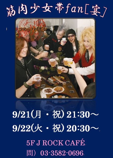 ※開始時間を21時30分→20時30分に変更※ ※人数が30人ほどですので、プロジェクター設置します※ ※大画面でみたいDVDがある方はご持参いただければかけます※ 4月、6月とお世話になりました。 「レアナンバー大解放!」2日間も同じお店は 筋少ジャックでお願いしておきました。 よろしくお願いします♪ @9月22日@ 時間:ライブ終了後(一応20:30)〜閉店(0時まで) --- ◆集合場所◆ 赤坂ブリッツチケット売り場前 ※2枚目の画像を印刷してもっておきます※ ◆時間◆ 20:00まで