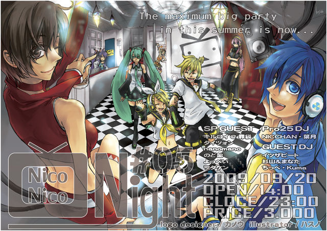 **************** こちらのイベントは終了しました。 忘れ物が多数届いております。忘れ物トピを確認して下さい! http://mixi.jp/view_bbs.pl?id=46481274&comm_id=3716111 **************** あれから半年・・・十分な休息を得て私達は帰ってきました! そう、北海道最大級ニコニコ動画イベント「ニコニコNIGHT」開催決定ですっっっ これ以上のないコンテンツボリュームを引っさげ、2009年9月20日札幌alifeにて14:00〜23:00までノンストップ!歌って、踊って、笑って楽しめ!自重したらそこで試合終了ですだよっ!! とりあえずこ