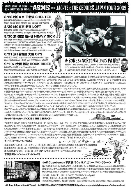THE A-BONES with JACKIE & THE CEDRICS JAPAN TOUR 2009