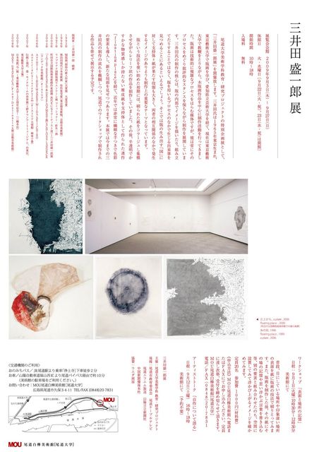 2009年、MOU尾道白樺美術館[尾道大学]の企画展、三井田盛一郎展を開催します。 現在、三井田盛一郎さんが自ら滞在して展示準備中です。 9月1日の火曜日、尾道滞在中に特別企画、ワークショップを開催します。 ワークショップ 「空を見る階段」表面と場所の記憶 日程:9月1日(火曜)10時30分〜12時30分 MOU尾道白樺美術館 一般からの参加を募っていますが学生も参加することが出来ます。子供から大人まで 普段、目にしている場所や印象深い場所の表面を紙に版画の技法で刷りとってみます。また、版画を制作した後、その紙にその場の記