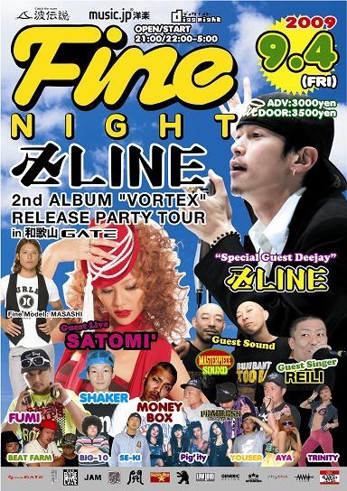 9/4金曜日GATEにて。。。 和歌山にあの窪塚洋介こと 卍LINEが初登場!!! そして 人気急上昇中の女性シンガー SATOMI' その他 豪華出演者でおくる FINE NIGHT IN WAKAYAMA!!!!! 和歌山では初の開催!!! 雑誌の取材もアリ!!!!!!!!!! この豪華イベントを見逃すな!!!! SPECIALGUEST LIVE:卍LINE, REILI, SATOMI' SPECIALGUEST SOUND:Master Peace DJ:SHAKER,FUMI,SE-KI,BIG-10 LIVE:MONEY BOX,BEAT FARM,YOUSER SOUND: FEARLESS,UNIQUENESS Dance:TRINITY,AYA,Pig'ity, ADV/DOOR 3,000/3.500 OPEN/START 21:00/22:00