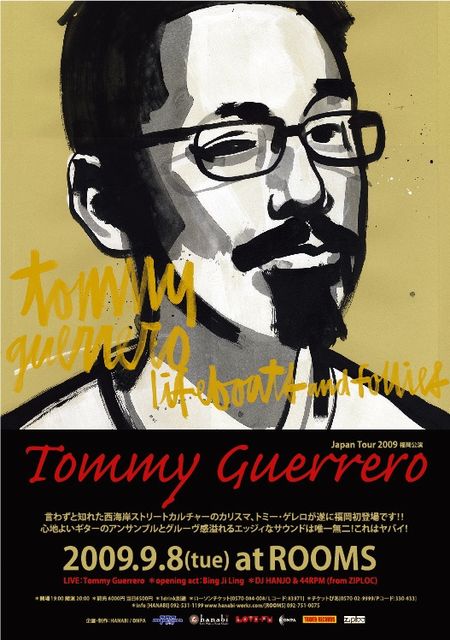 トミー・ゲレロ遂に解禁!!! 言わずと知れた西海岸ストリートカルチャーのカリスマ、トミー・ゲレロが 遂に福岡初登場です!! これはヤバイ! 限定250名です! SOLD OUT必至! チケットは7/5(日)、各プレイガイドにて発売開始! 【詳細】 心地よいギターのアンサンブルとグルーヴ感溢れるリズムが重なり合い、 一見穏やかな中にエッジィな研ぎ澄まされた感覚を刻み込むトミーの音楽は、 誰も真似ることのできない唯一無二の存在である。 ジャック・ジョンソンらと並び、現在のアメリカのシーンにおいて、 真のス