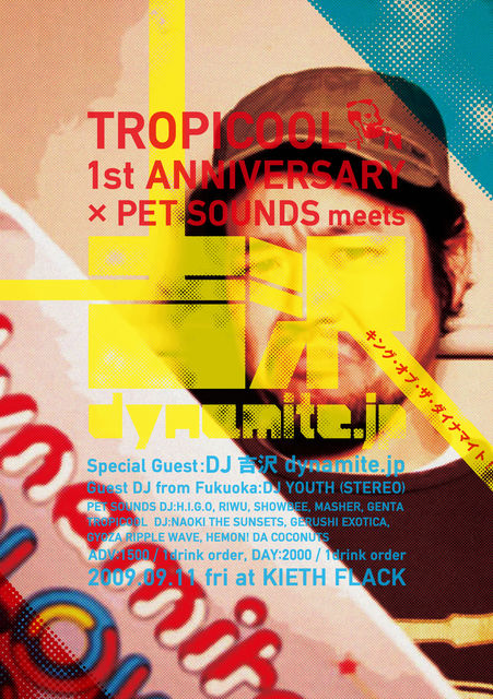 告知失礼します! 九州を代表するALLMIXパーティ <PetSounds>と この度一周年を迎える南国サウンドパーティ <Tropicool>の 共同企画としてスペシャルイベントが決定!!! スペシャルゲストには、 あらゆるジャンルのレコードを俎上に乗せ、 エフェクトを多様したフレキシブル且つ トリッキーなプレイで確実にパーティロックさせる男! DDDD DJ! ディー・ジェーイ! ヨヨヨ ヨシザワ ダ・ダ・ダ・ダイナマ〜イト!! 吉沢dynamite.jp氏をお迎えします! コミュ:http://mixi.jp/view_community.pl?id=79640 この男を語