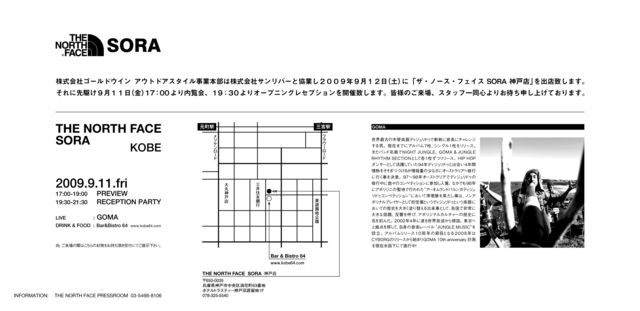 急なお知らせですが本日19:30より開催される THE NORTH FACE SORA 神戸店の