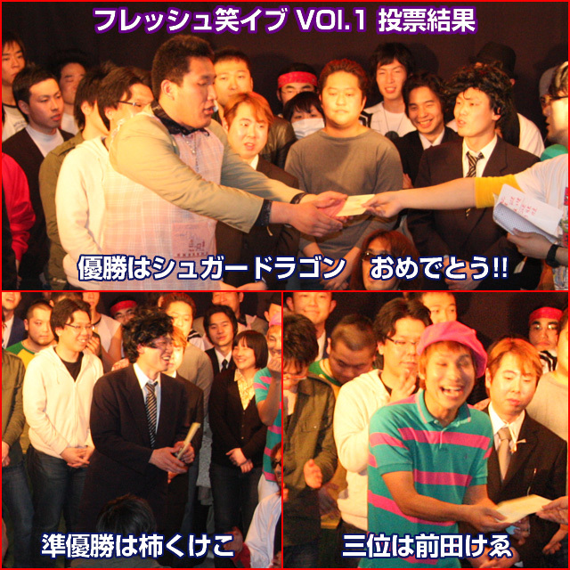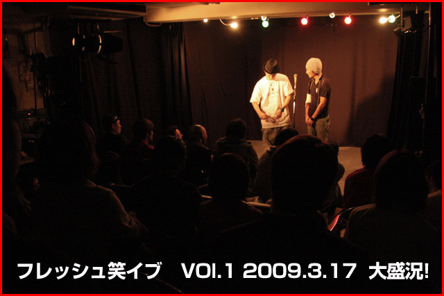 ★フレッシュ笑イブ 2009年9月15日(火) 19時スタート 入場料500円ポッキリ! 26組のフレッシュな芸人さんたちが「一金笑イブ出場権」& 賞金をかけて 3分ネタでお笑いバトル。是非若手を発掘して応援してください。 ☆出演☆ (MC:ベストポジション) デンシレンジ/カモメ/マントフフ/湯川真紀子/世界事情/TAKA村/えずれひろゆき/83幕府/サンデー竹橋/カネダマコト/汐田パンダ/ハッピーマン/八幡かおる/野良猫サンデーズ/リンダ☆リンダ/アジアンビューティ/アタッチマン/セミチャームドライフ/乙/こうけつ直樹/只野らっきょ/土佐ガツオ/渡辺美