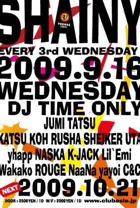 VUENOSでも数少ないDJ TIME ONLYのイベントといえばSHAINY 平日ながら毎回良質な雰囲気と沢山の人で話題沸騰中! DJ樹美のPLAYはもちろん現場第一主義のDJTATSUを中心に急成長をみせる若手DJ陣でOPENからCLOSEまで目がはなせません ステージを華やかに演出するSEXYなステージダンサー&不定期に開催しているファッションショー等も要チェックです 以下詳細です↓ DATE: Wednesday 9月16日 TIME: 23:00 ~ LATE OPEN:11PM PRICE: Entrance¥2500with1DRINK withflyer¥2000with1DRINK GENRE: Hip Hop/R&B