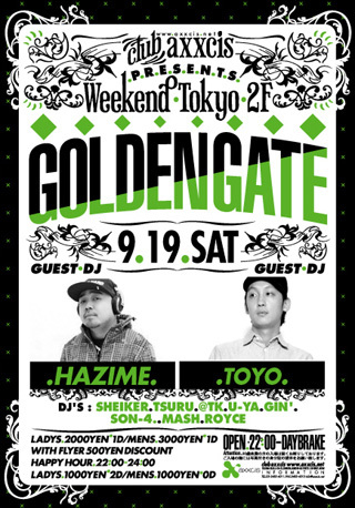 GOLDEN GATEは毎週土曜日に開催されているBIG EVENTです!!毎週有名DJをゲストに呼び盛大に盛り上がっています!!