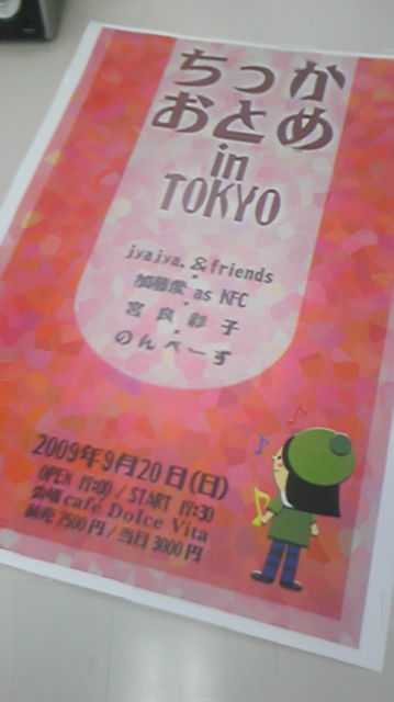 会場のURL訂正です。 http://homepage3.nifty.com/sekky/dolcevita/cafe.html ■主催 Ishi-G雑楽工房 / 「こんにちは。」 ■2500円 ■出演 jyajya.&friends 17:45〜 jyajya./石川オッジャ/村井友樹/emi(のんべーず)/よーこ(のんべーず) 加藤愛asKFC 18:30〜 加藤愛(かとうめぐみ)/立野裕明/星野里美 宮良彩子 19:15〜 宮良彩子/設楽博臣 のんべーず 20:00〜 emi/Ricky/ぼー/よーこ 20:45終了予定 ■打ち上げあり(出演者も参加予定) 打ち上げ幹事:うっちー