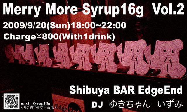 皆様、めりもコミュに参加してくださっていてありがとうございます そんな皆様に、Merry More Syrup16g vol.2のお知らせ! まだまだまだ鳴り終わらせません!! こうして2回目を迎えられるのもSyrup16gの音楽と、皆様のおかげです 待ってる人がいて それだけでもう十分です 前回同様、大音量で240min! もちろん大画面で映像も!!(今回はPVなども流す予定です☆) 飲んで歌ってまったりおしゃべり☆ 秋の夜長にSyrup16g、いかがでしょうか 深くたっぷりシロップ漬けになりましょう☆ そして今回は、人が溢れて