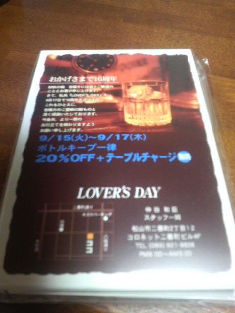 Bar THIRD STONE 10周年(9/20〜9/26)の1週間の予定。