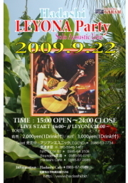 玲葉奈が宮崎市日南海岸沿いにある、オーシャンヒルキャンプ場内のHADASHI CAFEでライブします。 そのオープニングアクトとして、コレナニがガッツリお客を引き寄せます! コレナニ演奏時間は20:00〜21:00の間です。 2009/09/22 tue. 「Hadashi LEYONA Party」 日時: 2009.9. 22 (tue) Party Time:15:00〜24:00 料金: 前売¥2,000 当日¥3,000 会場: Hadashi Cafe(宮崎市大字内海大園7516) お問い合わせ: Hadashi Cafe TEL 0985-67-0989